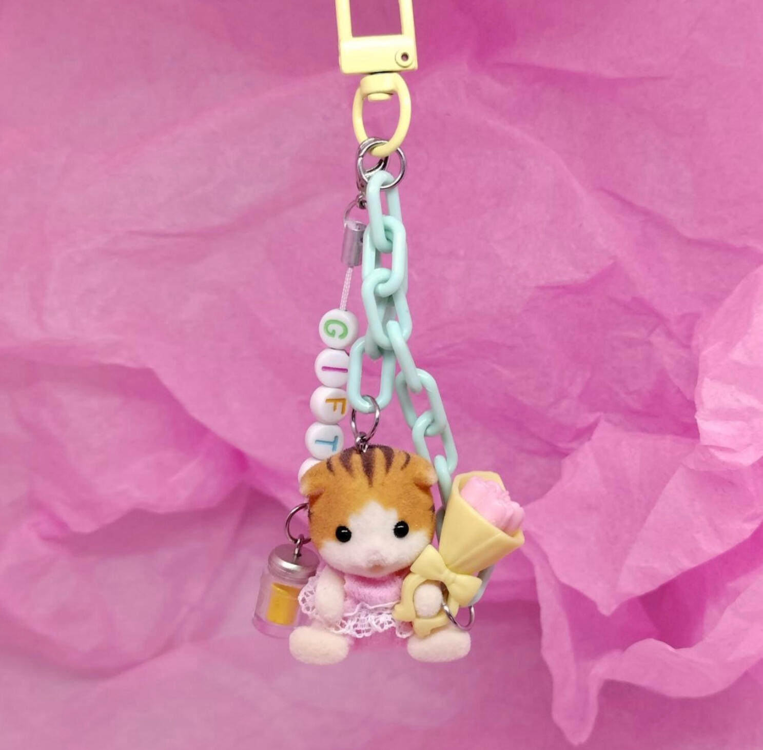 Usually, these are second hand Sylvanian Families toys that are either unwanted spares or, more commonly, were in poor condition and likely headed for landfill. beansfurolo does the beading and any custom clothing, and I do the hardware and dyeing.